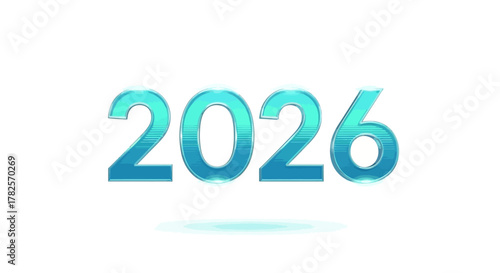 Aqua blue 3d numbers forming the year 2026 with subtle glitch effect and light glow