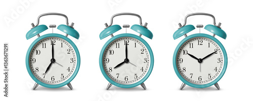 Aqua green twin bell Alarm Clock analog classic vintage retro style, isolated on a transparent background, PNG. High resolution.