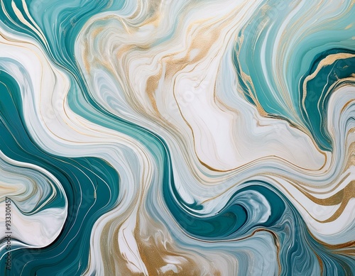 Aqua Marble Swirl - Serene Elegance with Gold Highlights