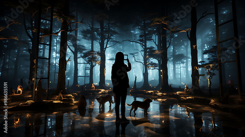 Ar art installation featuring special effects where digital sculptures projected into real spaces adding light and sound to physical artworks