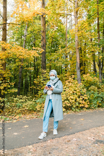 Arab muslim woman wearing face mask to protect herself from coronavirus outdoors