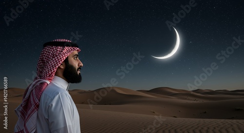 Arabian Nights: A Man Gazes at the Crescent Moon