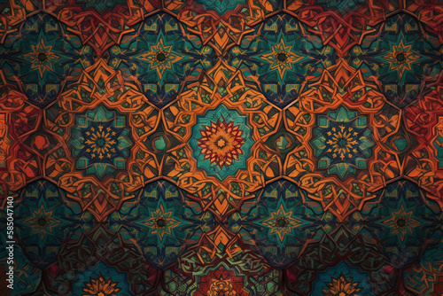 Arabic pattern background wallpaper illustration design. Intricate ornament decor with traditional arab textile decoration. Ai generated