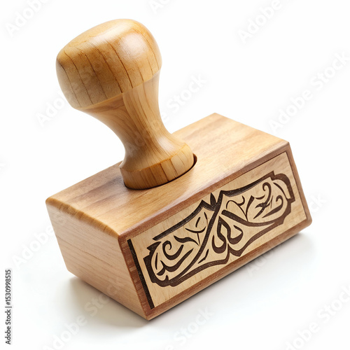 Arabic script rubber stamp with wooden handle