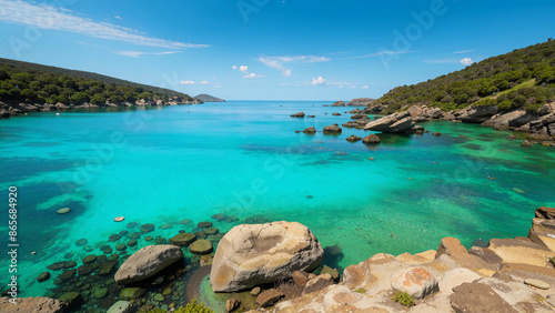 arafed view of a beautiful blue lagoon with rocks and clear water