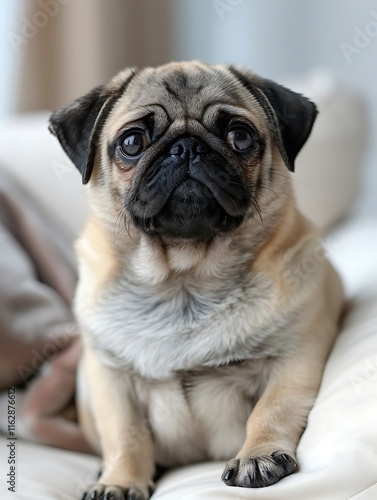 araffe sitting on a bed with a pillow and a blanket