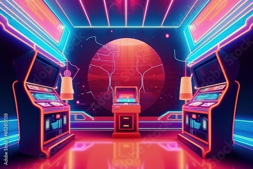 Arcade machine, 80s and 90s, retro, nostalgia concept, digital illustration. Generative AI