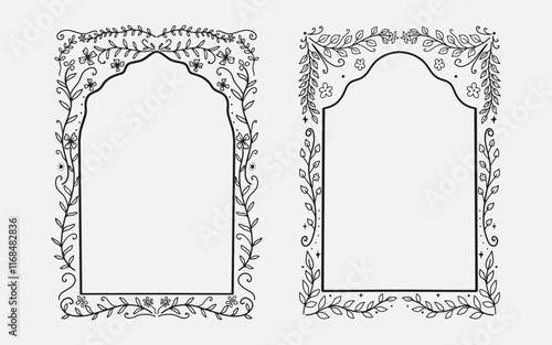 Arch floral border. mughal floral line art and silhouette style. vector illustration for invitation, poster or greeting ramadan kareem