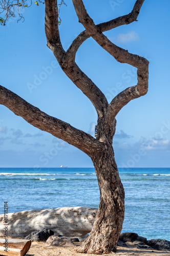 Arched Tree on the Edge of the Sea in Wakeiki Hawaii.