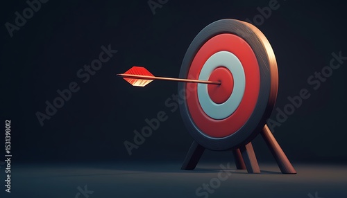 Archery target on dark background. Success concept. 3D Rendering