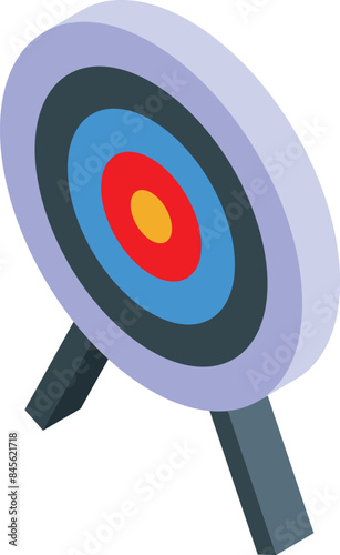 Archery target standing on a tripod with concentric circles in red, blue and yellow colors for shooting and aiming practice