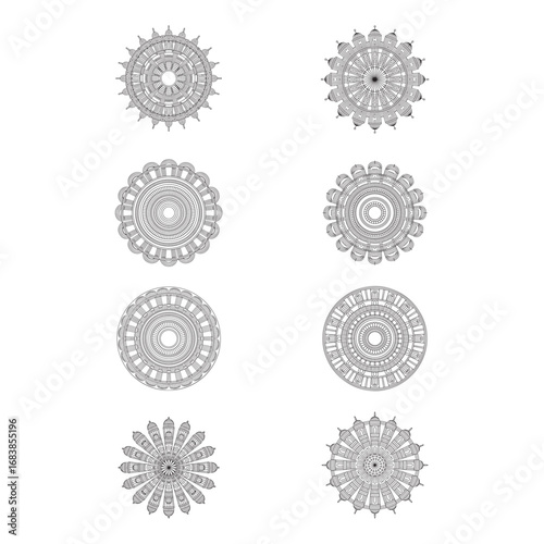 Architectural Elements Forming Mandala Line Art Vector Design