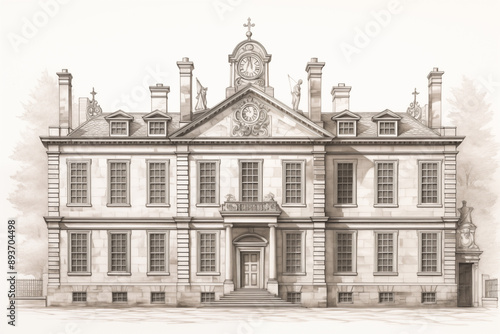 architectural sketch and patent drawing of georgian manor house