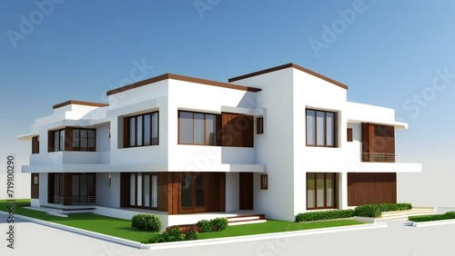 Architecture of 3d rendering modern house on white background. 3d illustration. concept for real estate or property