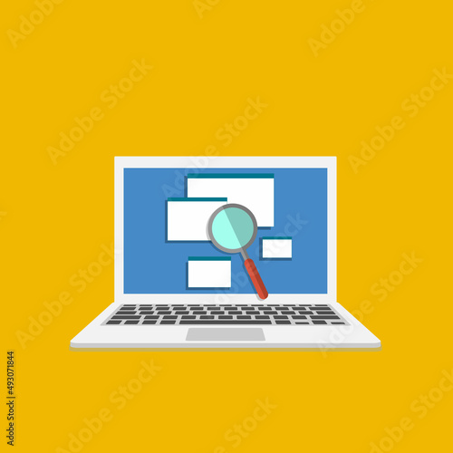 Archive review. Online analyzing check of law legal docs, find or search on laptop.