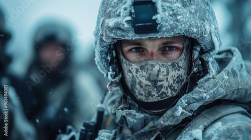 arctic special forces engaged in a hightech winter warfare exercise using camouflage exosuits and energy weapons against a backdrop of aurora borealis