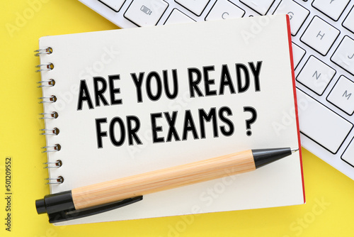ARE YOU READY FOR EXAMS? words written in the office notebook.