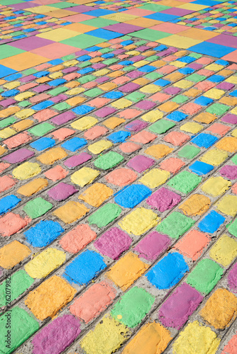 Argentina, Buenos Aires, La Boca, Colorful pavement