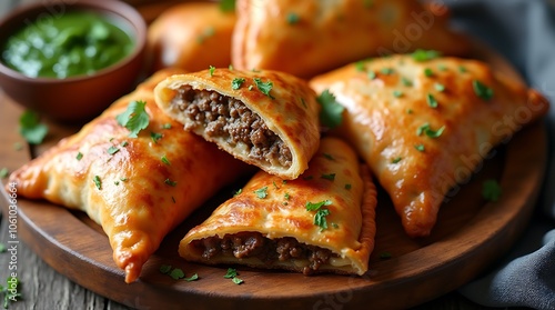 Argentinian Empanadas with Beef Filling and Chimichurri Sauce for a Classic Flavor