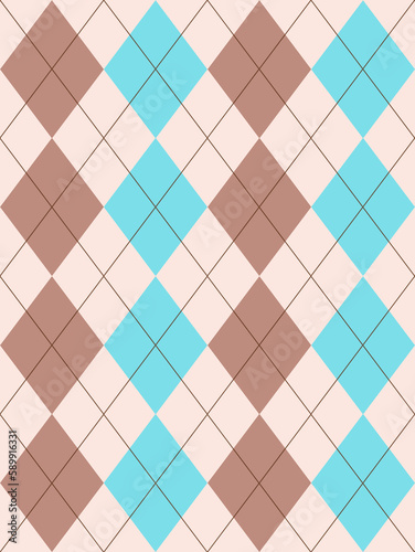 Argyle tartan seamless pattern . Fabric diamond repeating texture on white background. Classic argyle brown and blue checkered ornament.