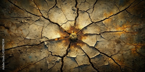 Arid landscape depicting radial cracks emanating from a central point in the earth's parched surface