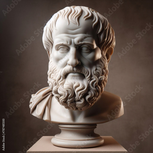 Aristotle bust sculpture, the Greek philosopher. Illustration of the sculpture of Aristotle. The Greek philosopher. Aristotle is a central figure in the history of Ancient Greek philosophy.