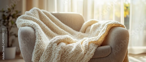 Armchair displays cozy blanket, suggesting relaxation in peaceful domestic setting.