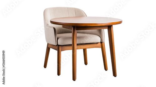 Armchair with wooden table, cozy modern design, isolated, cut out transparent