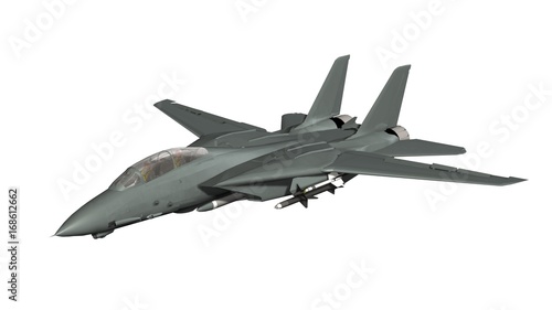 armed military fighter jet in flight isolated on white background