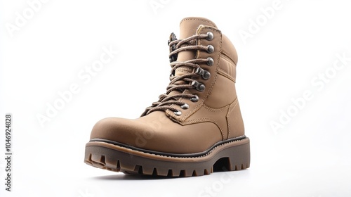 Army Boot. Object of Soldier's Battle Shoes in White Background