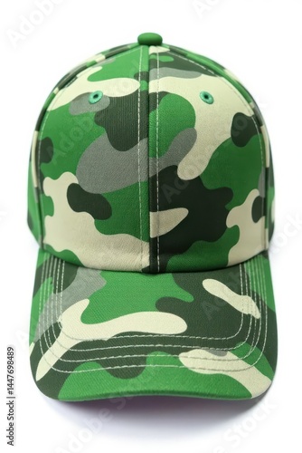 Army green camouflage baseball cap, isolated on white background , travel, concealment