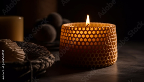 Aromatherapy candle burning in tranquil spa treatment room for relaxation generated by AI