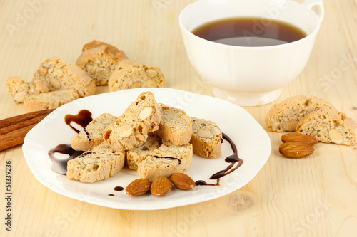 Aromatic cookies cantuccini and cup of coffee
