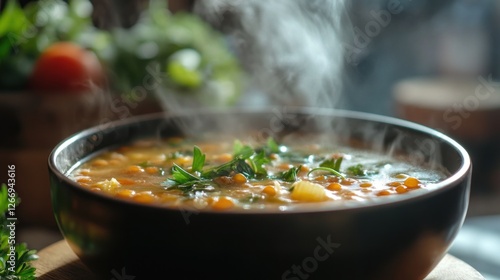 Aromatic Homemade Lentil Soup, Steaming Hot in a Rustic Bowl