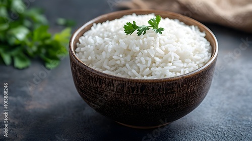 Aromatic Jeera Rice Served in Traditional Ceramic Bowl with Warm Tones and Copy Space