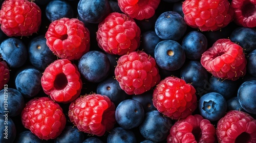 Aromatic raspberries and blueberries create an eye-catching pattern of textures