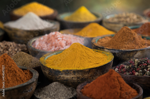 Aromatic spices on wooden background