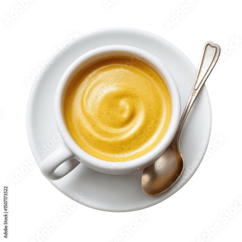 Aromatic Turmeric Latte in White Cup with Spoon