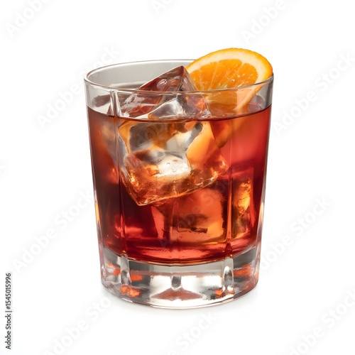 Arrange a few ice cubes and orange slices in a glass.
