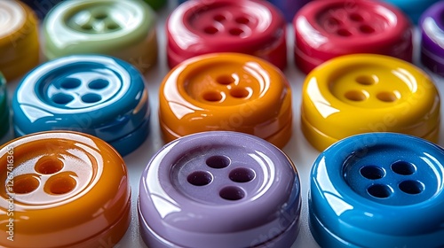 Arrangement of Colorful Buttons Laid Out Neatly on a Clean White Surface Displaying Vibrant Hues High Detail Textures and Subtle Shadows with Copy Space for Text or Design Elements