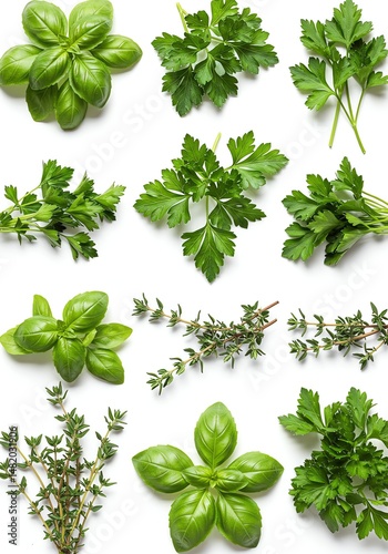 Arrangement of Fresh Herbs Isolated on White Background