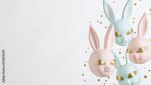 Arrangement Of Pastel Bunny Masks With Gold Accents