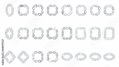 Array of geometric shapes formed by small circles in a grid pattern on a white background image