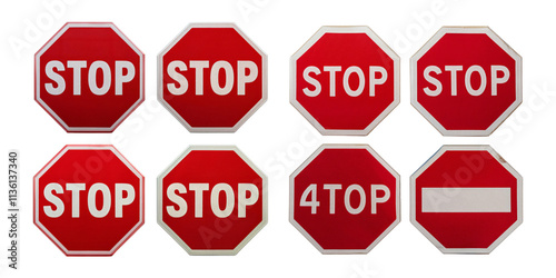 Array of Stop Signs in Red Color, PNG collection, set bundle, isolate on transparent or white background