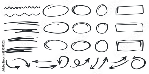 Arrow circles and abstract doodle icon in hand drawn style. Number vector illustration on isolated background. Letters, arrows sign business concept.