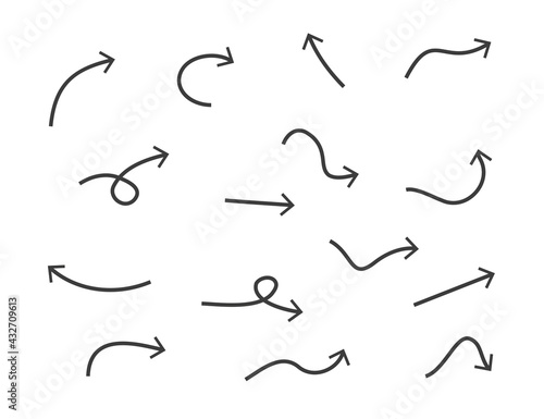 Arrow, doodle, drawing, sketch icon set. Vector illustration.