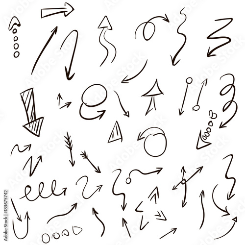 Arrow doodles vector. A set of simple sketches of arrows. Up, down, left, right ones. The effect of a pencil sketch isolated on white background.. Vector eps 10.