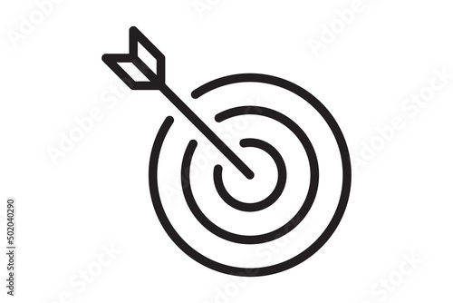 Arrow in target icon. Strategy symbol success. Vector illustration.