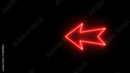 Arrow red color glowing neon icon. neon left arrow icon. shining direction arrows and 3D illustration.