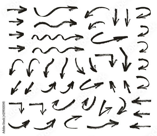 Arrow set. Hand drawn various elements. Grunge style. Vector isolated collection.